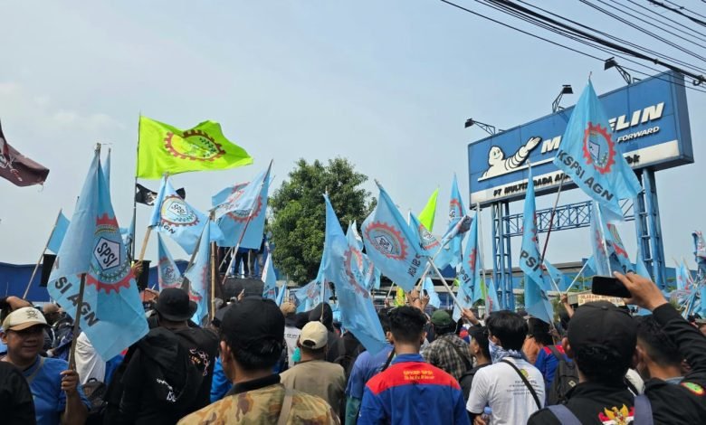 INFO CIKARANG – Ratusan buruh memadati ruas Jalan Pantura di Desa Karangsari, Kecamatan Cikarang Timur, Kabupaten Bekasi, Senin (3 November 2025). Mereka memblokir jalan nasional saat menggelar aksi protes di depan pabrik PT Multistrada Arah Sarana (Michelin Indonesia), menyusul pemutusan hubungan kerja (PHK) massal oleh pihak manajemen.