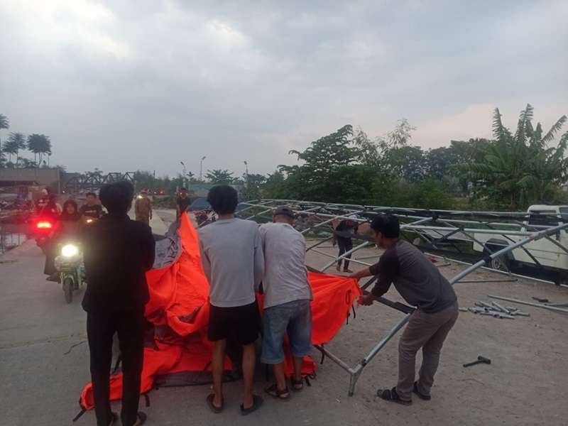 Perakitan Tenda Darurat Untuk Warga Terdampak Penertiban Bangli. /Foto: Dok. Diskominfo Kabupaten Bekasi