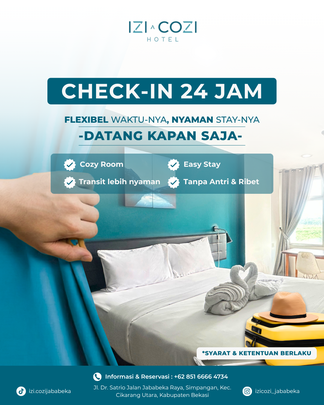Izi Cozi memahami bahwa tidak semua perjalanan bisa direncanakan dengan rapi-terkadang tamu datang larut malam, dini hari, atau di sela aktivitas kerja yang padat.